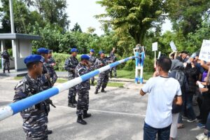 Karena keadaan semakin memanas dan para pendemo tersebut memaksa masuk ke Mako Lantamal XIII, dengan sigap, setelah mendapatkan laporan dari Perwira Jaga Pos Mako Lantamal XIII, Tim pasukan PHH yang terdiri dari personel Bintara dan Tamtama dengan menggunakan peralatan pengamanan PHH lengkap segera menuju ke lokasi tempat terjadinya demo, tim PHH yang terdiri dari Prajurit Lantamal XIII dan Yonmarhanlan XIII ini membentuk formasi dan melaksanakan prosedur penindakan dan berhasil memukul mundur para demonstran.