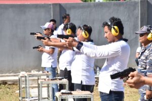 Selesai melaksanakan joging kegiatan dilanjutkan dengan latihan menembak yang diikuti oleh prajurit Satuan Kerja (Satker) Staf Intel dan Tim Intel Lantamal XIII,yang dilaksanakan guna meningkatkan kemampuan dalam menembak (ETV02)