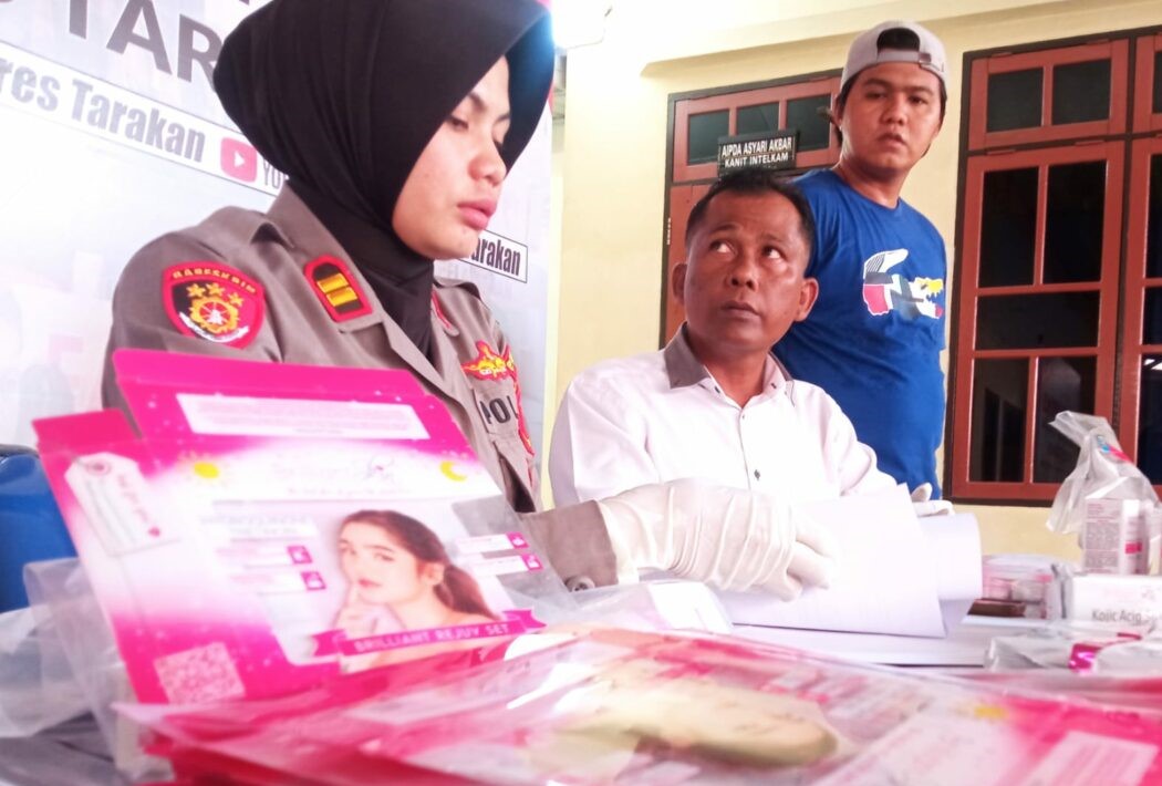Selain kosmetik sebanyak 21 koli meliputi 10.607 pcs yang hendak dikirim melalui KM Putra Kusuma dengan rute Tarakan – Tolitoli, polisi juga mengamankan seorang wanita sebagai tersangka, yakni inisial S (49).