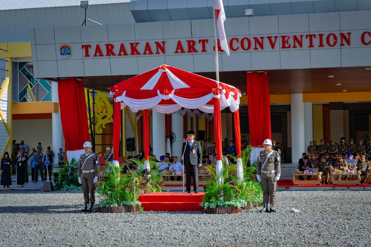 Suasana apel berlangsung khidmat, dengan diiringi iringan musik Marching Band dari SMK Negeri 1 Tarakan, serta diikuti ratusan peserta upacara dari berbagai instansi. Apel kemudian ditutup dengan prosesi pemotongan tumpeng sebagai simbol rasa syukur dan kebersamaan (VT).