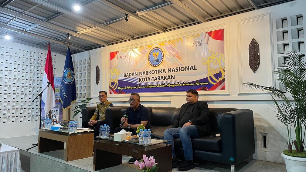 EQUATOR TV, TARAKAN – Angka penyalahgunaan narkotika di Kota Tarakan mencapai taraf memprihatinkan, dengan hampir 600 orang diamankan dari operasi sepanjang akhir tahun lalu (2024) hingga pertengahan tahun ini. Menanggapi kondisi darurat ini, Badan Narkotika Nasional (BNN) Kota Tarakan menggelar diskusi bertajuk “Problematika Peredaran dan Penyalahgunaan Narkotika di Kota Tarakan” pada Kamis (19/6/2025) di halaman kantor BNN Kota Tarakan. Diskusi ini merupakan bagian dari peringatan Hari Anti Narkotika Internasional 2025, dengan tema “Memutus Rantai Peredaran Gelap Narkoba melalui Pencegahan, Rehabilitasi, dan Pemberantasan Menuju Indonesia Emas 2045”.