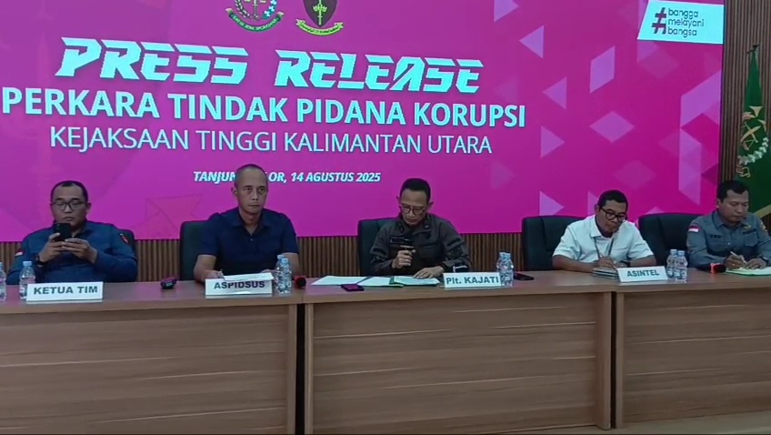 “Kami sudah kantongi alat bukti yang cukup sehingga hari ini, Kamis (14/8/2025) ditetapkan sementara 4 tersangka. Namun proses penyidikan selanjutnya masih terus berlanjut,” ungkap, Plt Kepala Kejati I Made Sudarmawan,S.H.,M.H saat konfrensi pers di aula pertemuan Kejati Kaltara sore ini tadi.
