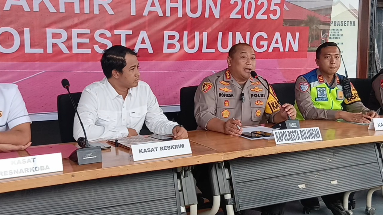 Hal tersebut disampaikan Kapolresta Bulungan Kombes Pol. Rofikoh Yunianto, SK, saat konferensi pers akhir tahun 2025 yang digelar di Mako Polresta Bulungan, Senin (29/12/2025).